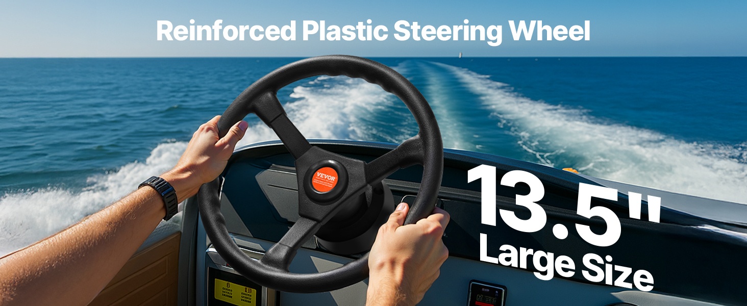 13.5-tuumainen ohjauspyörä on valmistettu korkealaatuisesta vahvistetusta muovista. Liukuesteinen aaltokuvio parantaa otetta ja tuo miellyttävämmän ajokokemuksen myös pidemmillä ajomatkoilla tai kosteissa olosuhteissa.