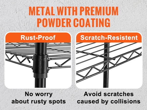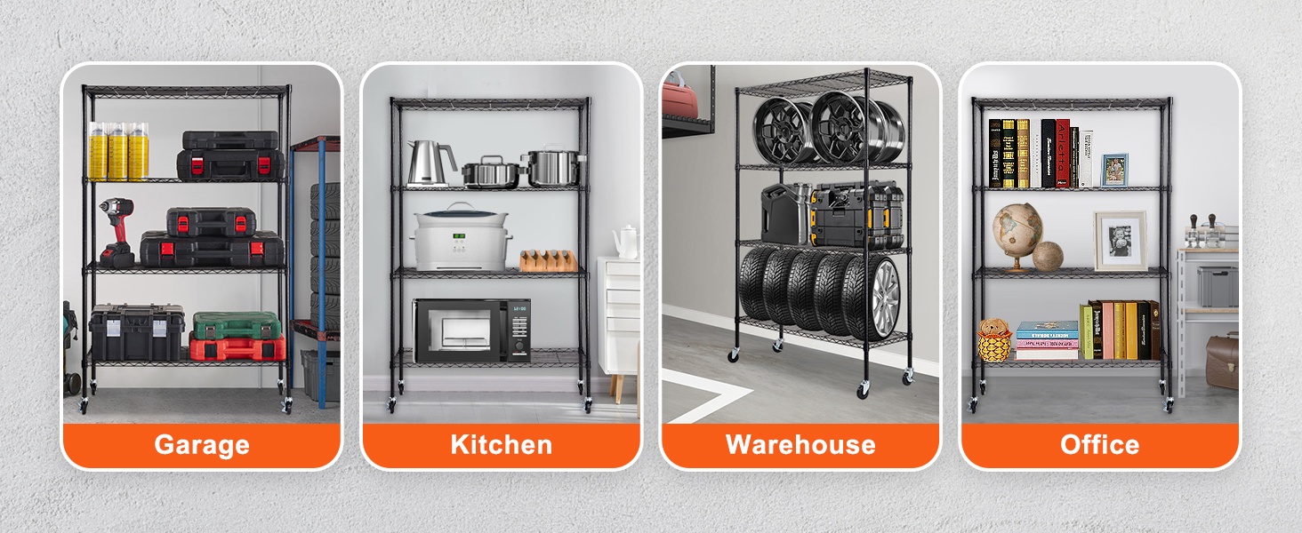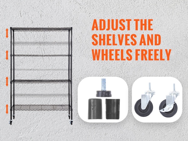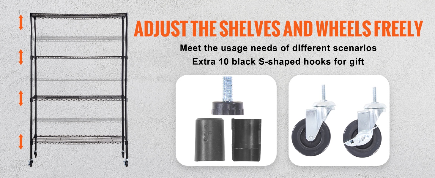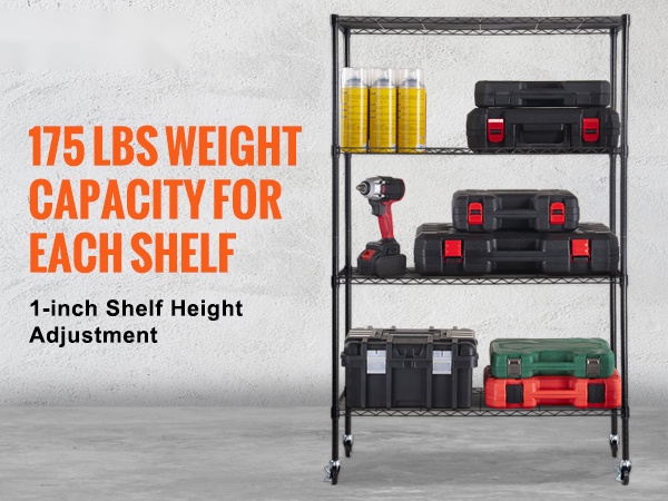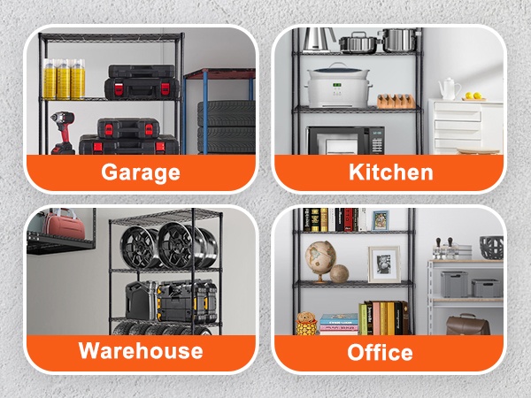Tämä 5-tasoinen säädettävä hyllykkö tarjoaa jämäkän ja selkeän säilytysratkaisun esimerkiksi keittiöön, varastoon, kellariin, kylpyhuoneeseen tai kodinhoitohuoneeseen. Jokainen hylly kestää jopa 400 lbs/181.4 kg, ja kokonaiskantavuus on 2000 lbs/907.2 kg, joten painavatkin laatikot ja työkalut pysyvät tukevasti paikoillaan.
