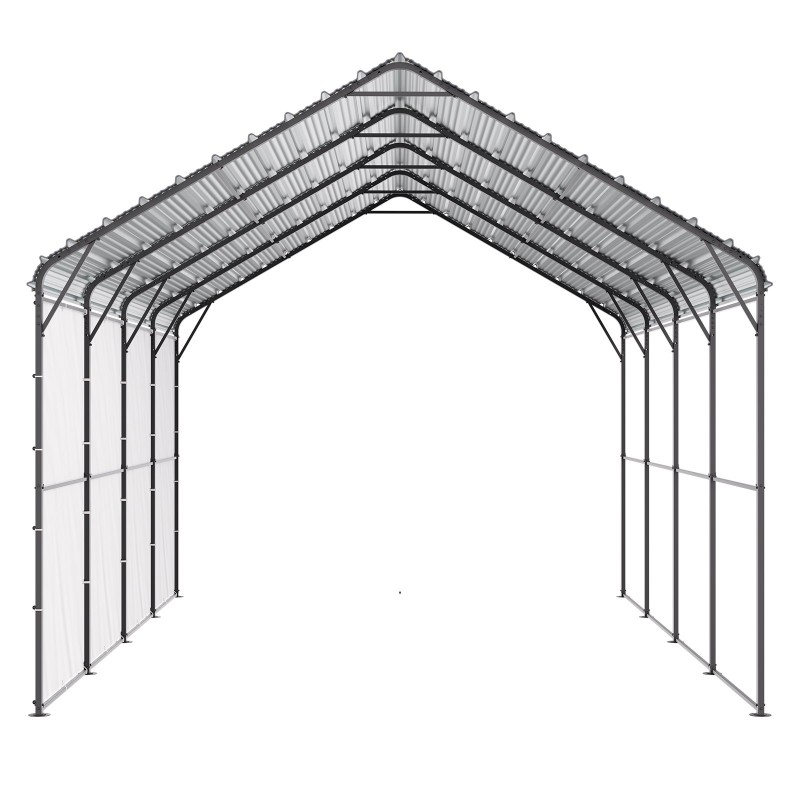 Metallinen autokatos galvanoitu Q195 teräsrunko 3,6x6 m irrotettavat PE-sivuseinät