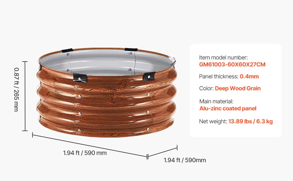 Tämä metallinen korotettu kasvatuslaatikko tarjoaa runsaasti tilaa vihannesten, kukkien, yrttien ja mehikasvien kasvatukseen. Avoin pohja mahdollistaa hyvän vedenpoiston ja juurten luonnollisen kasvun.