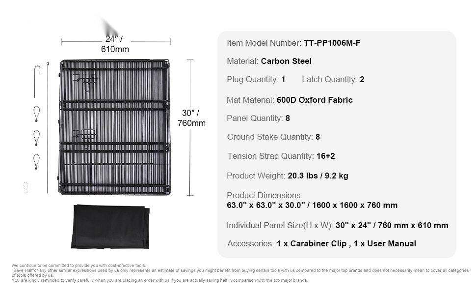 Metallinen leikkikehä 8 paneelia 760 mm korkea hiiliteräs lukittava ovi