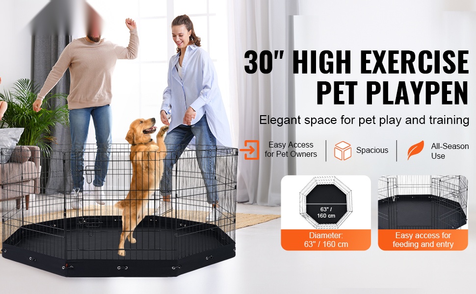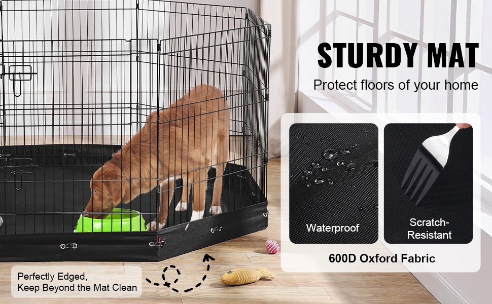 Taitettava metallinen leikkikehä antaa koiralle, kissalle tai muulle pieneläimelle oman, turvallisen tilan sekä sisällä että ulkona. Kahdeksasta paneelista koottava aita voidaan muotoilla esimerkiksi kahdeksankulmioksi, mikä maksimoi käytettävän tilan ja sopii hyvin myös harjoitteluun ja perustaitojen opetteluun.