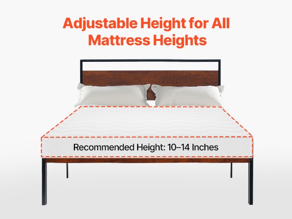 Metallinen alarunko sopii eri paksuisille patjoille. Erityisen suositeltuja ovat 10–14-tuumaiset patjat, jolloin kokonaiskorkeus ja käyttömukavuus ovat useimmille käyttäjille miellyttävät. Voit valita patjan korkeuden omien mieltymystesi mukaan.