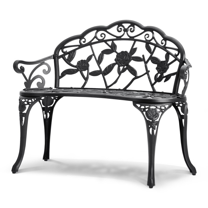 Metallinen ulkopuutarhapenkkki tarjoaa mukavan istumapaikan pihaan, puistoon tai kuistille. Penkki kestää enintään 480 lbs / 218 kg ja sopii 1–3 henkilölle. Sääolosuhteita kestävä rakenne ja selkänoja käsinojilla tekevät penkistä miellyttävän paikan rentoutumiseen.
