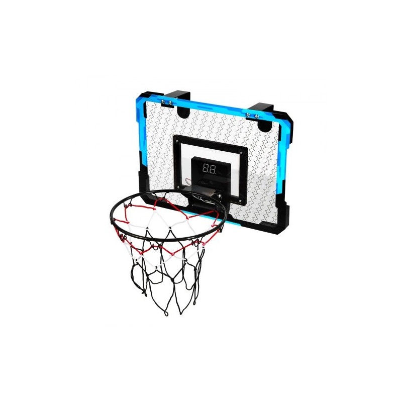 Hauska, kompakti sisäkoripallosetti ovikiinnityksellä: LED-valot, sähköinen pistelaskuri, musiikki, taittuva säilytys, kestävä ja turvallinen. Mukana 3 palloa. Ikäsuositus 3+.
