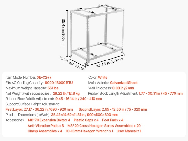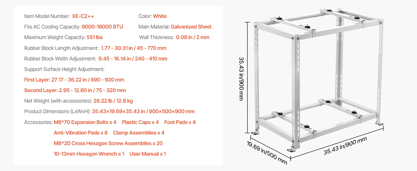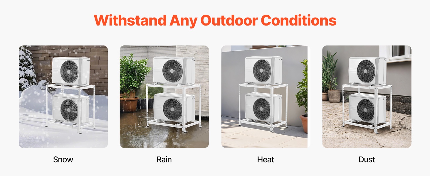 Säänkestävä lattiateline tarjoaa erinomaisen vakauden ja tärinää vaimentavat ominaisuudet, mikä auttaa pitämään ulkoyksikön toiminnan hiljaisena myös raskaassa käytössä. Yleismallinen rakenne sopii monenlaisille ilmastointiyksiköille, ja asennus on suoraviivainen.