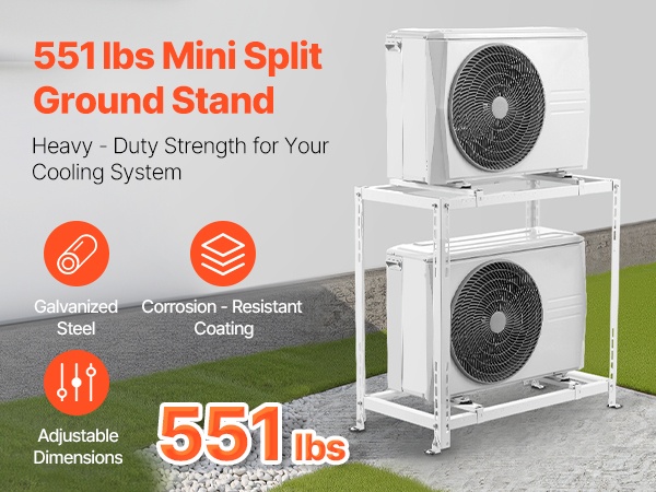 - Säädettävä korkeus auttaa pitämään ulkoyksikön poissa lammikoista ja lumesta
