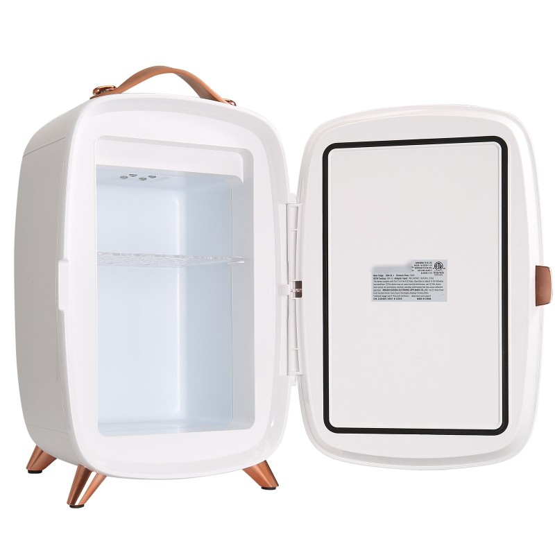 Etupaneelissa on HD-peili ja kolme säädettävää LED-valoa, joiden kirkkautta voi mukauttaa ympäröivän valaistuksen mukaan esimerkiksi meikkausta varten. Kompaktin koon, kevyen rakenteen (vain 4.08 lbs / 1.85 kg) ja pehmeän PU-kahvan ansiosta laite on helppo ottaa mukaan. Mukana tulee USB-virtajohto ja verkkovirtasovitin, joten jääkaappia voi käyttää kotona, toimistossa tai auton virtalähteessä.