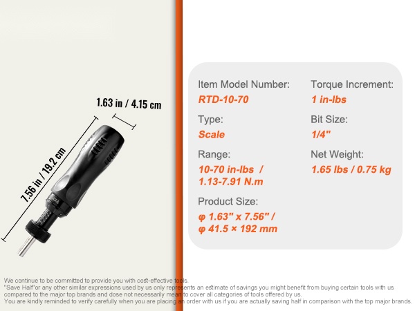 Tämä momenttimeisseli kattaa momenttialueen 10-70 in-lbs / 1.13-7.91 N·m, joten se soveltuu monen kokoisille ja tyyppisille ruuveille. Yhdellä työkalulla voit kiristää ja löysätä eri kokoisia ja eri mallisia ruuveja, mikä helpottaa työtä ja säästää aikaa.