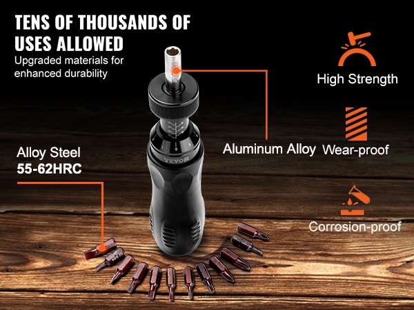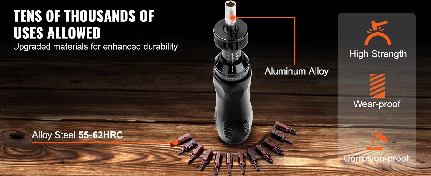 Rungon alumiiniseos tarjoaa hyvän korroosionkestävyyden, on vähemmän altis ruostumiselle ja pidentää työkalun käyttöikää. Samalla se on kevyt ja käteen sopiva, mikä vähentää rasitusta pidemmissäkin työrupeamissa. Teräksen seoksesta valmistettu terä, jonka kovuus on 55-62HRC, kestää hyvin veto- ja vääntökuormitusta.