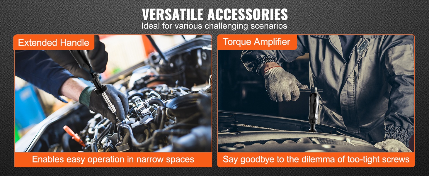 Mukana tuleva jatkovarsi helpottaa kauempana tai syvemmällä sijaitsevien ruuvien käsittelyä. Sen avulla yletyt ruuveihin ilman tarpeetonta kurottelua tai kiipeämistä, mikä vähentää epämukavuutta ja väsymystä käytön aikana.