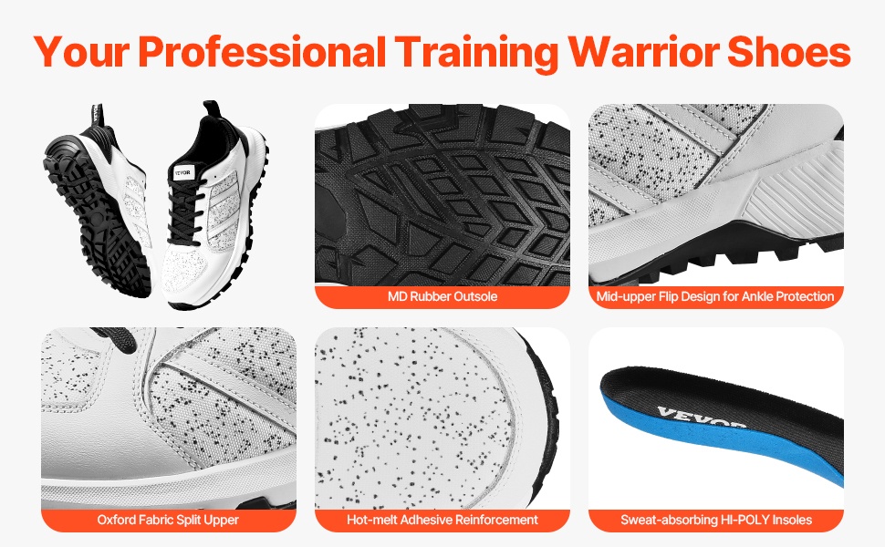 MD-kumipohja tarjoaa hyvän pidon ja suojaa jalan keskiosaa sekä päällistä rullautumiselta. Hengittävä Oxford-päällinen lisää käyttömukavuutta, ja lämpöpuristetut vahvikkeet suojaavat erityisesti kuluvia kohtia. Sisäpohja imee kosteutta ja auttaa ehkäisemään epämiellyttäviä hajuja pitkäkestoisen harjoittelun aikana.