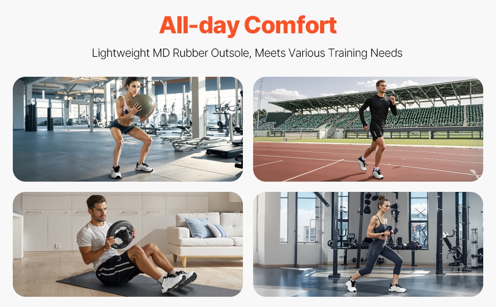 Kevyt MD-kumipohja vähentää jalkoihin kohdistuvaa rasitusta, jotta jalat eivät väsy helposti pitkien harjoitusten aikana. Kengät mukautuvat hyvin tasaisiin voimaharjoituksiin, dynaamisiin aerobisiin harjoituksiin, liikkuvuutta vaativaan voimisteluun ja monipuoliseen kuntoiluun.