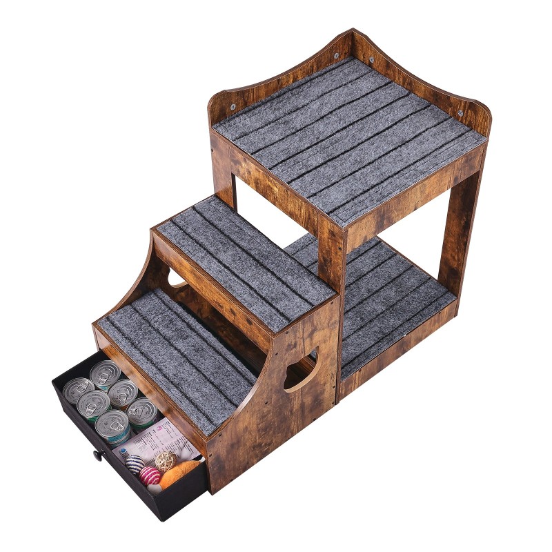 Monitasoinen lemmikkisänky ikkunatasolla irrotettavilla portailla vetolaatikolla pieni rustiikinruskea