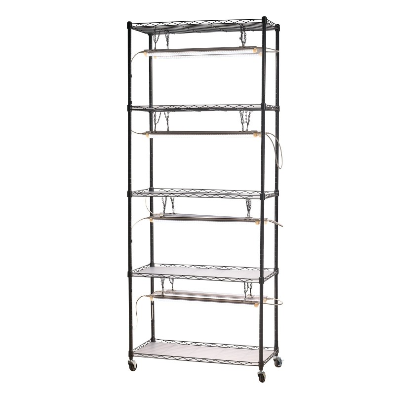 Monitasoinen sisäkasviteline kuudella tasolla 180 senttimetriä korkea kahdeksalla täysspektrisellä LED-valolla