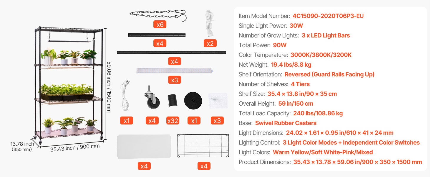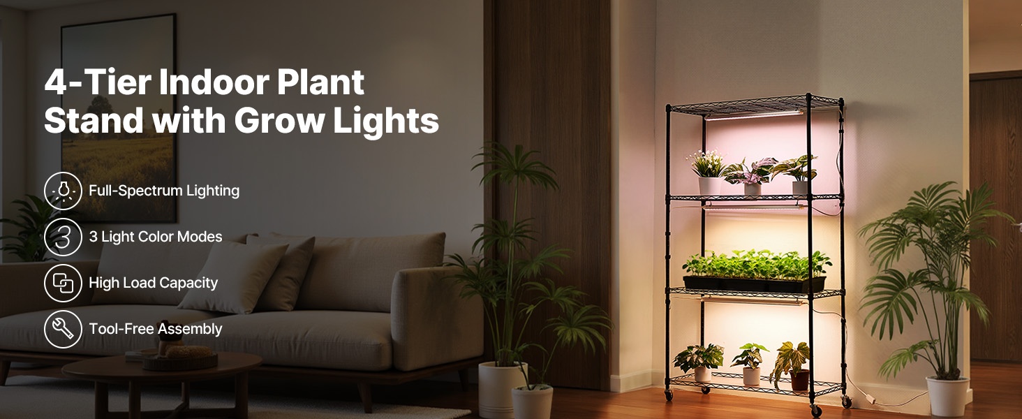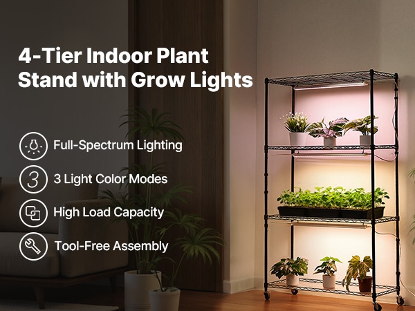 Tämä monitasoinen sisäkäyttöön tarkoitettu kasviteline integroiduilla kasvivaloilla sopii hyvin siementen idätykseen, taimiruukuille ja huonekasveille. Korkea 180 cm runko, kuusi tasoa ja liikuteltavat pyörät tekevät siitä käytännöllisen ratkaisun olohuoneeseen, parvekkeelle, käytävälle tai muihin tiloihin, joissa haluat kasvattaa ja esitellä kasveja.