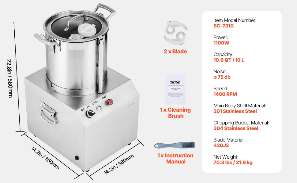 Tässä monitoimikoneessa on 19 QT / 18 L erittäin suuri kulho ja 1500W tehokas moottori. Voit yhdellä painalluksella hienontaa monenlaisia raaka-aineita, vihanneksista hedelmiin ja pähkinöihin. Suuret määrät valmistuvat nopeasti, mikä helpottaa sekä arjen ruoanlaittoa että ammattikeittiön esivalmisteluja.