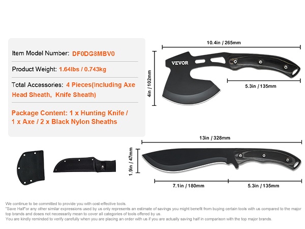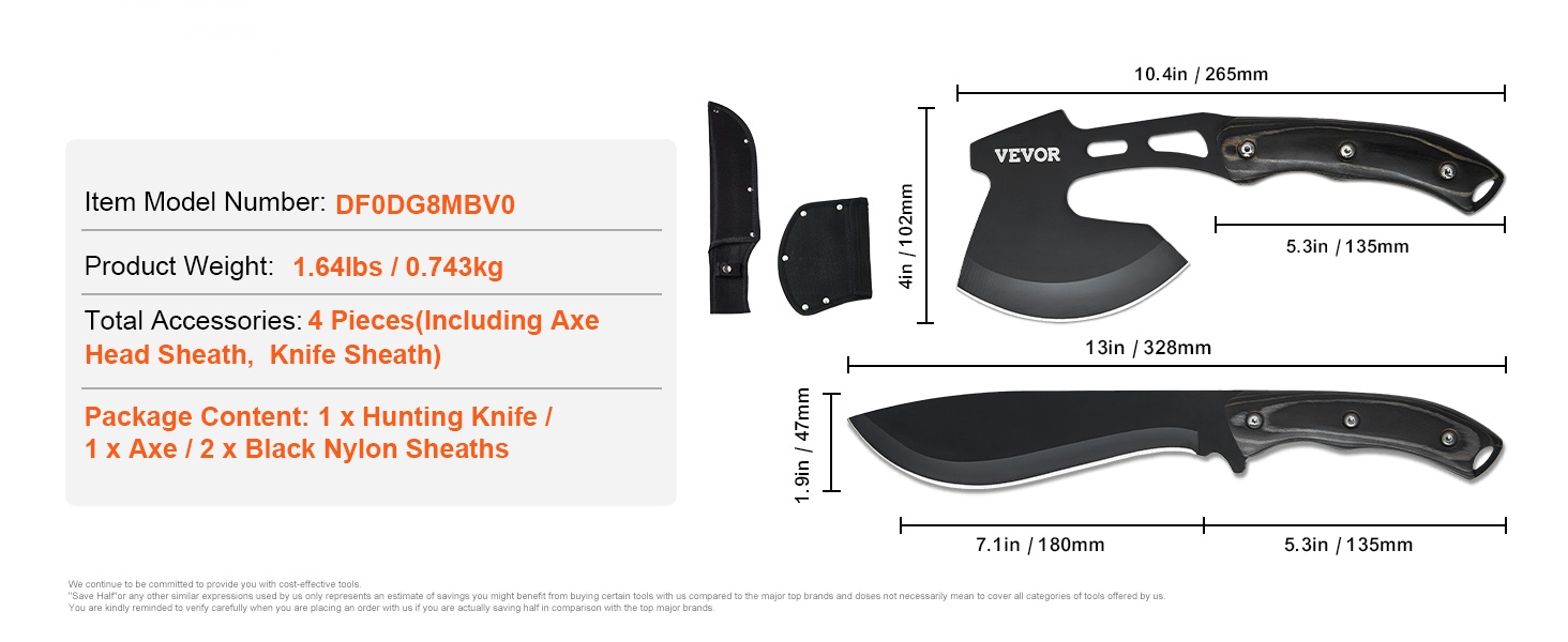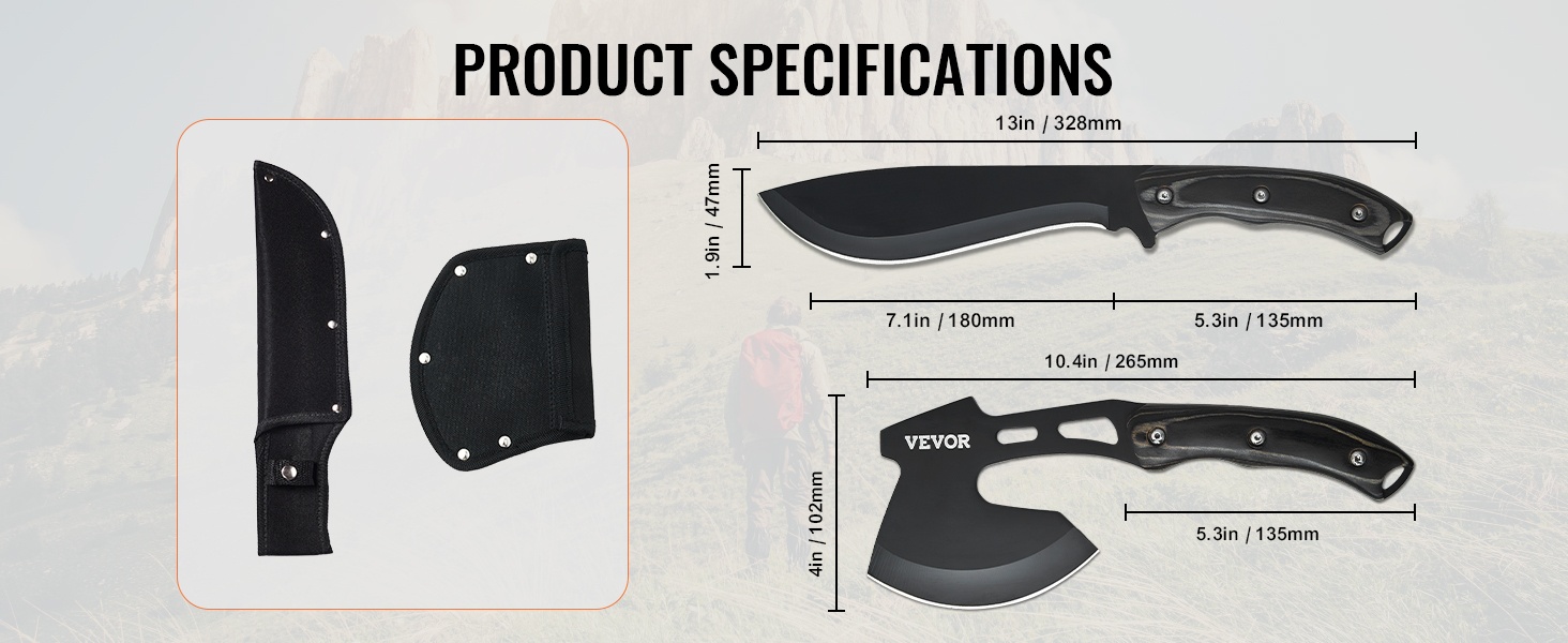 Tämä selviytymislapion ja -kirveen yhdistelmä on suunniteltu ulkoilusta pitäville. Kestävä ja käytännöllinen setti sopii muun muassa vaellukseen, leirintään, retkeilyyn ja erämaassa liikkumiseen sekä hätätilanteiden varalle.