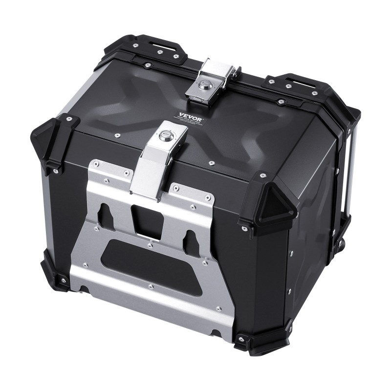 Moottoripyörän takalaukku alumiiniseos 55 L vesitiivis lukollinen irrotettava nahkavuori selkäpehmuste musta