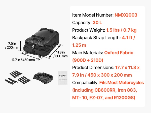 Tämä laajennettava moottoripyörän takalaukku on suunniteltu takapenkin tai takatelineen päälle, ja se sopii useimpiin moottoripyörämalleihin. Laukku tarjoaa lisäsäilytystilaa lyhyille ja pidemmille matkoille ja pitää varusteet suojassa ja helposti saatavilla.