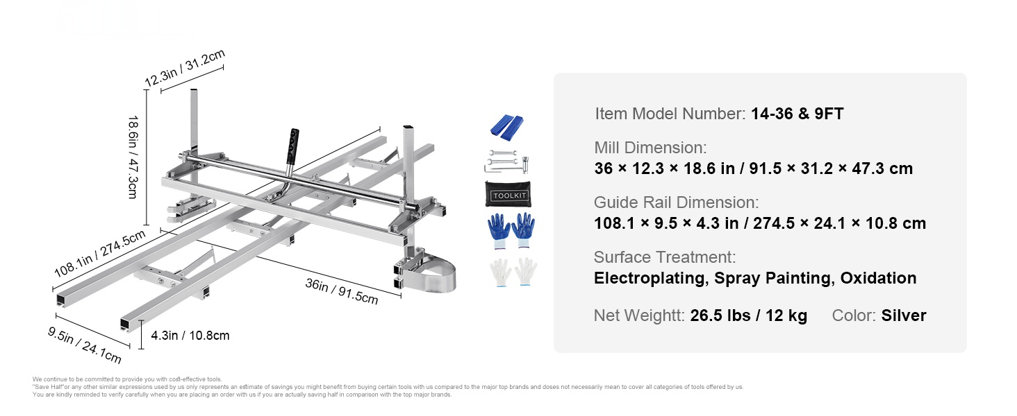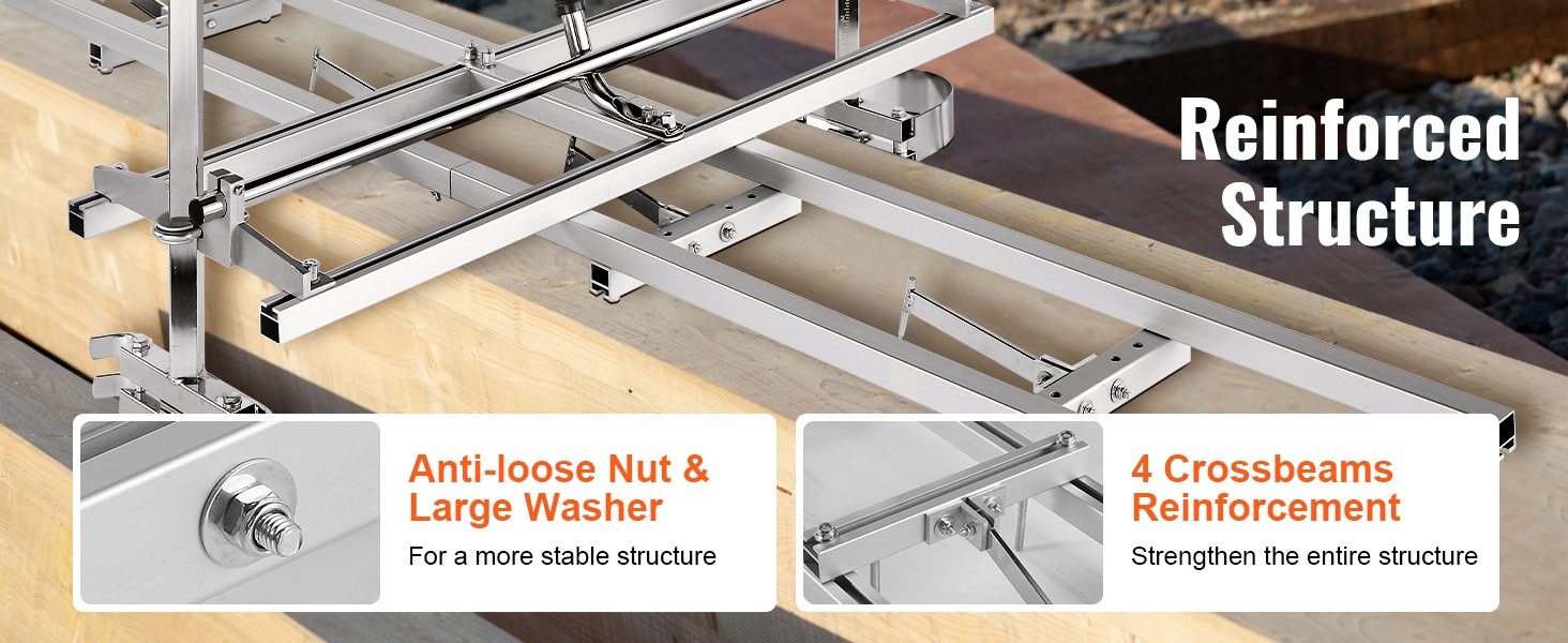Tämä pystysuuntainen moottorisahan sahauslaite sopii 2–6 tuuman (5–15 cm) levyisille lankuillle tarkkoja pystysuoria leikkuja varten. Sen avulla muutat raakapuun tasalaatuisiksi ja siisteiksi laudoiksi työmaalle tai puuverstaaseen.