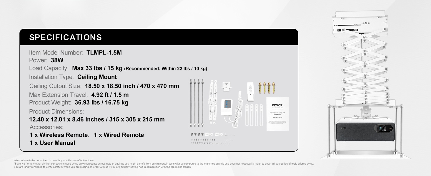 – Säädettävä nostokorkeus jopa 4.92 ft / 1.5 m erilaisiin tiloihin