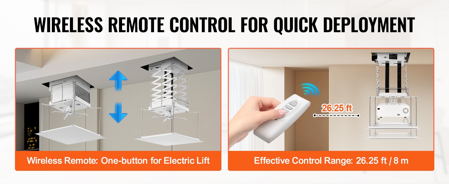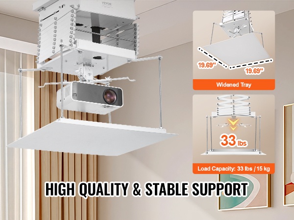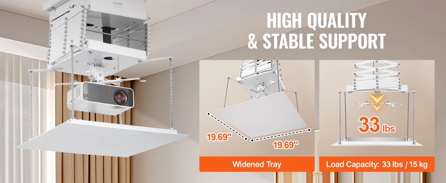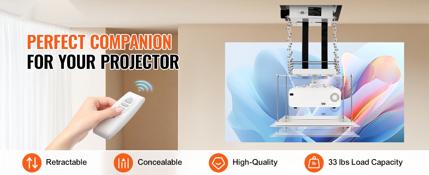 Tämä moottoroitu projektorinostin voidaan asentaa huomaamattomasti alaslaskettuun tai alaslaskettuun kattoon. Piilotettu rakenne ja integroitu kaapelinhallinta luovat siistin ja yhtenäisen ilmeen kotiin, toimistoon, studion tai esiintymislavan käyttöön.