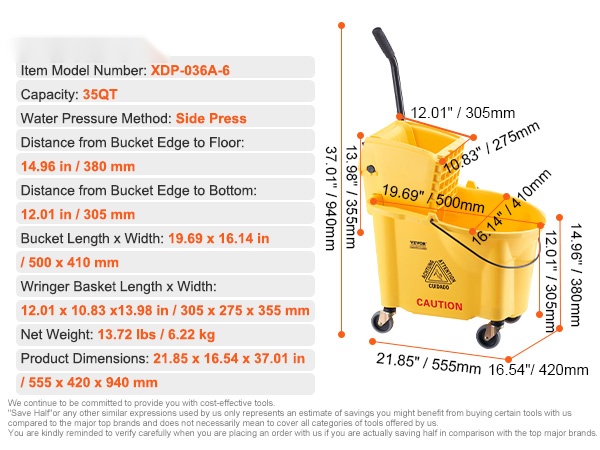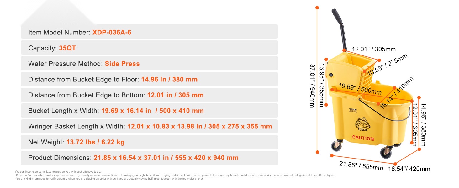 - Etäisyys ämpärin reunasta lattiaan: 13.98 in / 355 mm