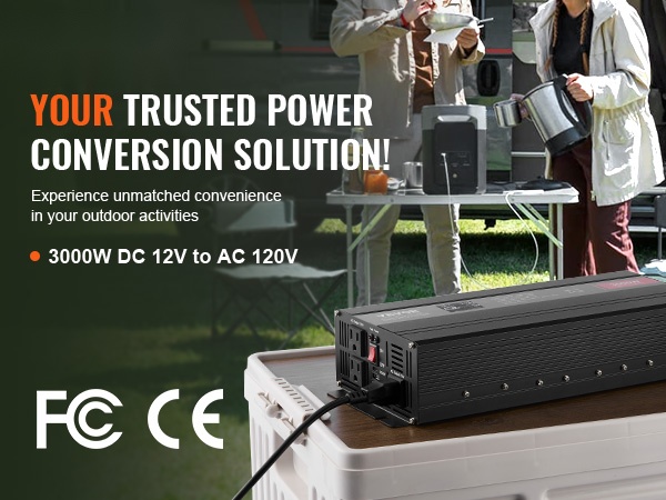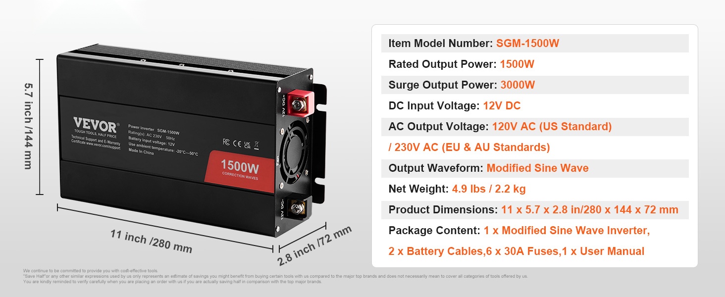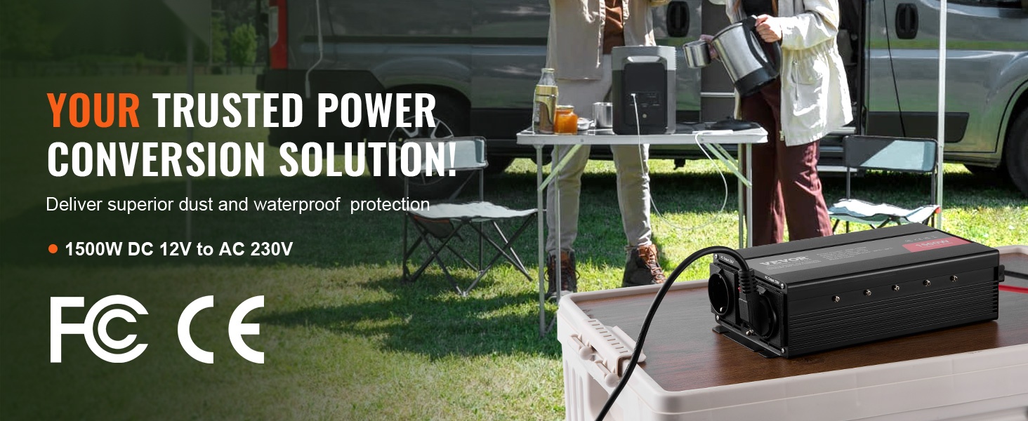 5000W muokatun siniaallon vaihtosuuntaaja muuntaa DC 12V -jännitteen AC 230V -verkkojännitteeksi ja mahdollistaa useiden laitteiden samanaikaisen käytön. Laitteessa on 2 AC-pistorasiaa, 2 USB-porttia ja 1 Type-C-portti, LCD-näyttö sekä kaukosäädin mukavaan käyttöön myös vaikeapääsyisissä asennuspaikoissa.