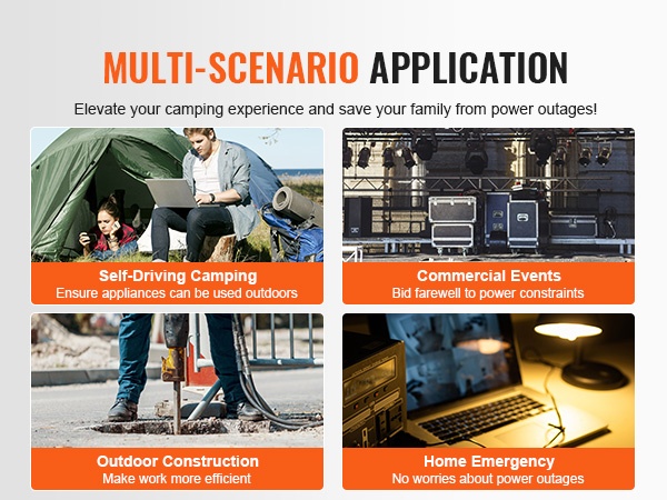Vaihtosuuntaajassa on 2 AC-pistorasiaa, 2 USB-porttia ja 1 Type-C-portti, joten voit käyttää jopa 5 laitetta samanaikaisesti. Se soveltuu esimerkiksi kodin varavirraksi, toimistoon, matkailuajoneuvoihin ja retkeilyyn.