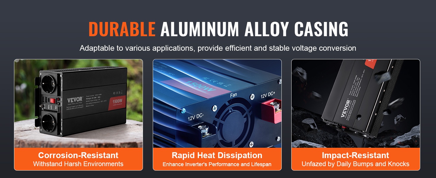 Vaihtosuuntaaja sopii kodin hätä- ja varavirtalähteeksi, matkailuautoon, veneeseen tai leirintäkäyttöön. Muokattu siniaalto tarjoaa käyttövirran monille kodinkoneille ja elektroniikkalaitteille, jolloin arjen toiminnot voivat jatkua myös sähkökatkon tai liikkumisen aikana.