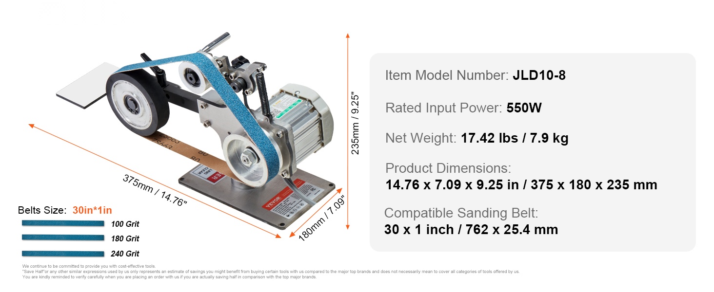 Pakkaukseen sisältyy kolme 72 x 2 inch hiomanauhaa eri karkeuksilla: 100, 180 ja 240. Valitse karkea hionta, välihionta tai hieno viimeistely yhdellä ja samalla koneella.