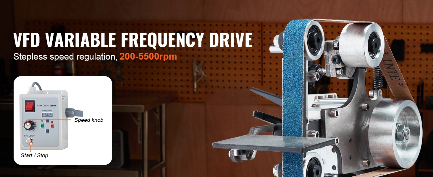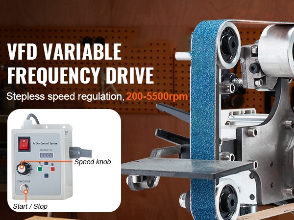 VFD-taajuusmuuttaja mahdollistaa portaattoman nopeudensäädön. Voit valita korkean nopeuden nopeaan materiaalin poistoon tai matalamman nopeuden tarkkaan ja hienoon hiontaan, työn vaatimusten mukaan.