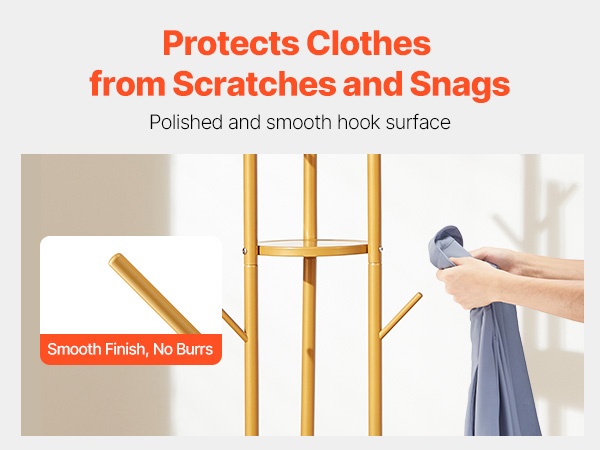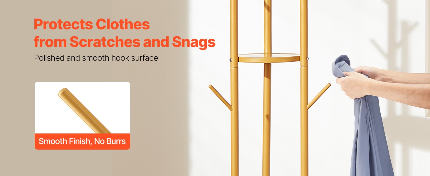 Koukuissa on sileä, huolellisesti viimeistelty pinta ilman teräviä reunoja. Se viimeistelee naulakon ulkonäön ja auttaa suojaamaan vaatteita naarmuilta ja kulumiselta. (Yhden koukun kantavuus: 6.6 paunaa / 3 kg; kokonaiskantavuus: 33 paunaa / 15 kg)