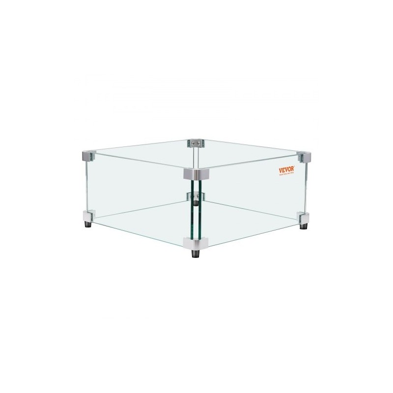 Neliömallinen lasinen tuulensuoja tulipöydälle karkaistu 8 mm 543x543x191 mm alumiinikiinnikkeillä