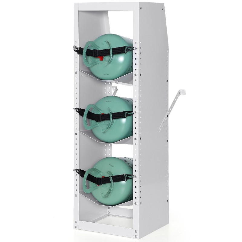 Säädettävät reiät mahdollistavat hyllyjen ja pysäyttimien korkeuden muokkaamisen erikokoisille säiliöille. Hyllyn mitat: 370 × 330 × 50 mm / 14.56 × 12.99 × 1.96 inch. Sopii 30–50 lbs vakiopulloille, mikä auttaa optimoimaan tilankäytön ja varmistaa säiliöiden oikean sijoittelun.