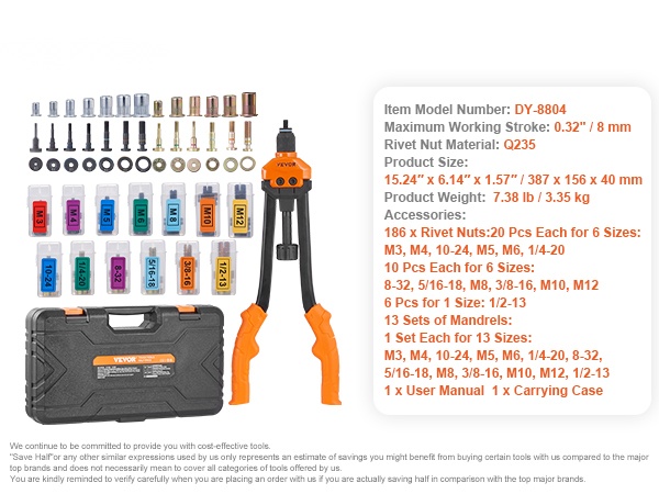 - Pituus: 40.6 cm (16-tuumainen) niittimutterityökalu