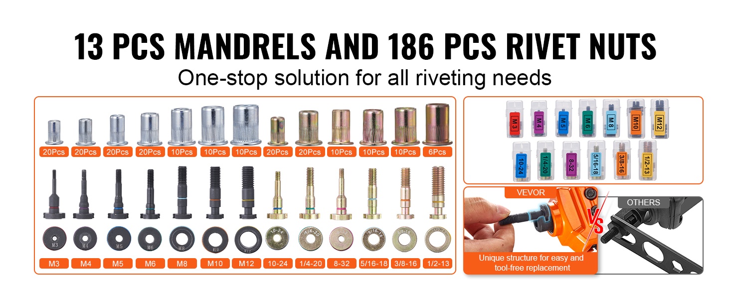 Niittimutterisarja kattaa laajan kirjon niittaustarpeita ja soveltuu moniin eri pintoihin ja materiaaleihin. Se toimii hyvin sekä tee-se-itse -projekteissa että ammattilaiskäytössä ja auttaa tekemään työstä tasalaatuista ja tehokasta erilaisissa asennuksissa.