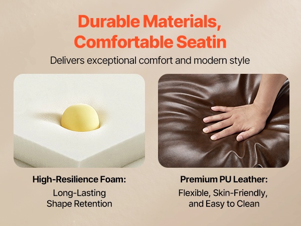Verhoiluna on pehmeä ja sileä PU-nahka, joka tuntuu miellyttävältä ja näyttää siistiltä. Se sopii hyvin moderniin sisustukseen ja on helppo pyyhkiä puhtaaksi arjen käytön jälkeen.