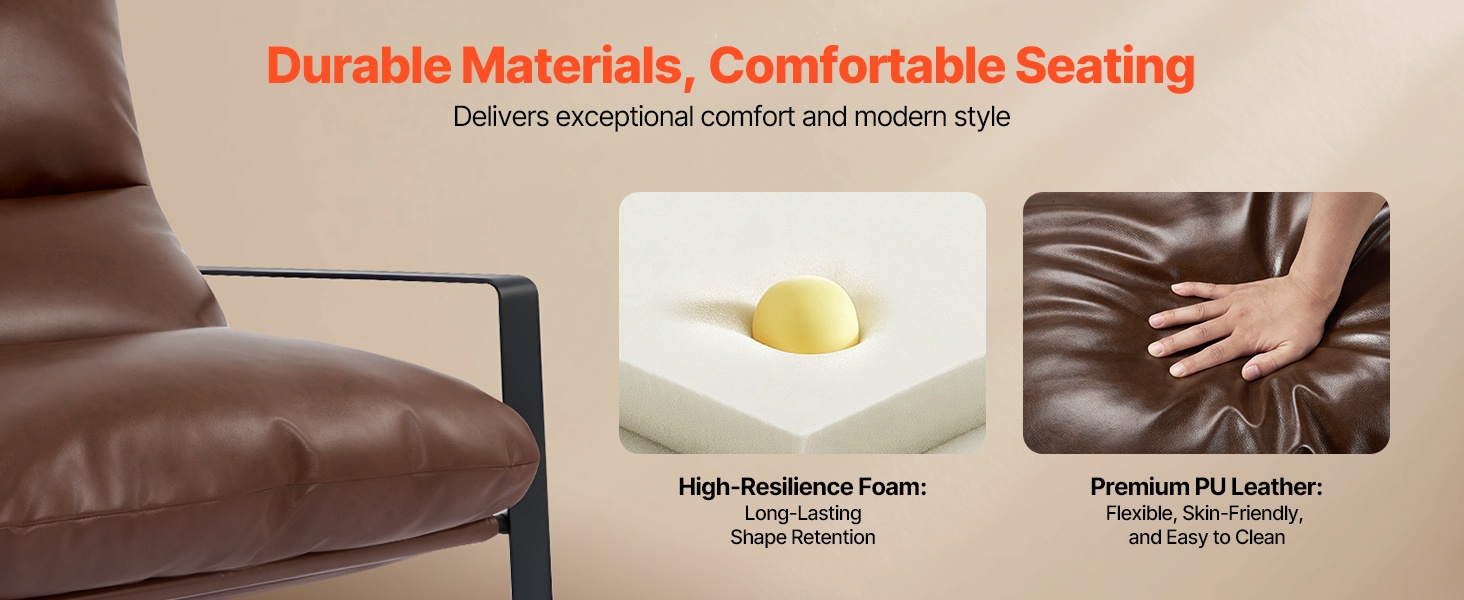 Tuolin puolikalteva rakenne on suunniteltu ergonomisesti tukemaan selkää. Istuimen ja selkänojan pehmusteena on korkealaatuinen, tiheä vaahto, joka mukautuu kehon muotoihin ja tarjoaa napakan lannerangan tuen. Tämä tekee tuolista miellyttävän paikan lukemiseen, tv:n katseluun tai rentoutumiseen.
