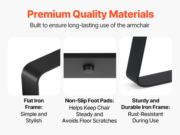 Nojatuolin runko on valmistettu kestävästä tasateräksestä, joka on suunniteltu kestämään käyttöä ilman vääntymistä. Kantavuus on jopa 300 lbs/135 kg. Jalkojen alla olevat liukuesteet parantavat vakautta ja auttavat suojaamaan lattiaa naarmuilta ja liukumilta.