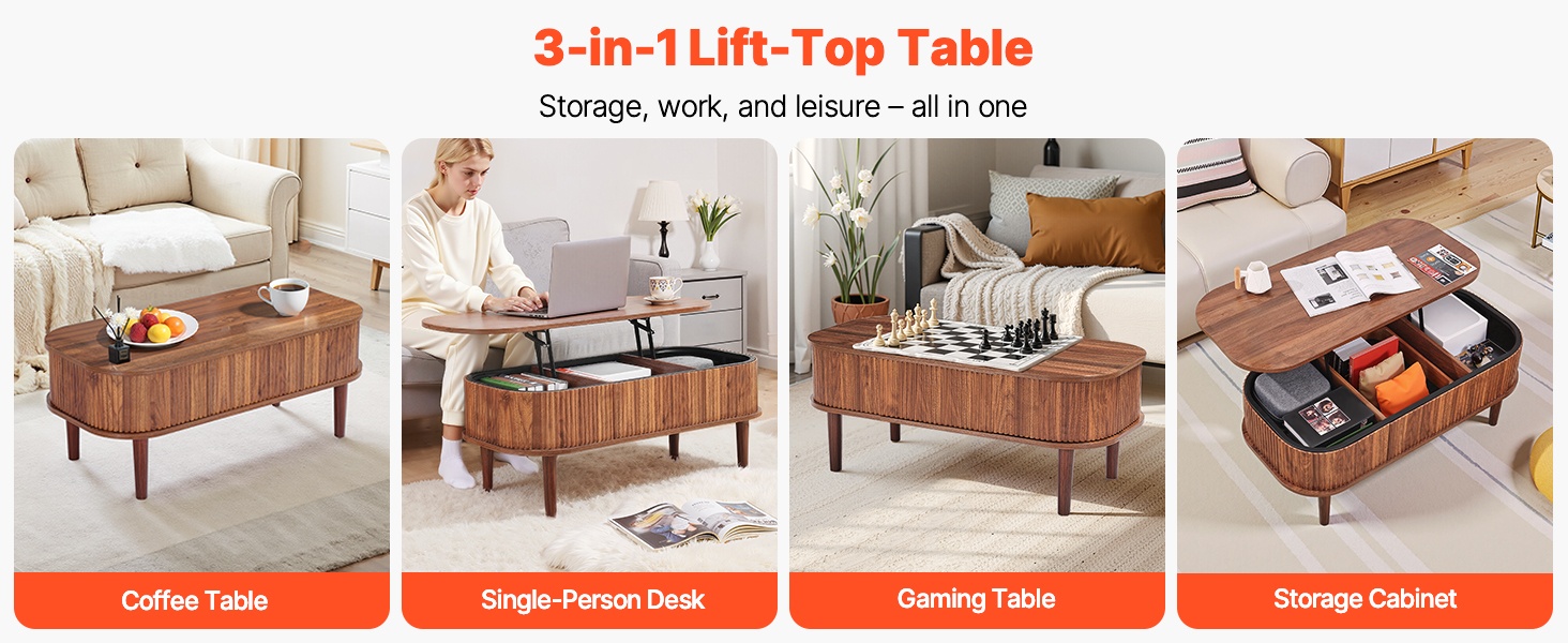 - Nostokannellinen sohvapöytä, jossa piilotettu säilytyslokero.