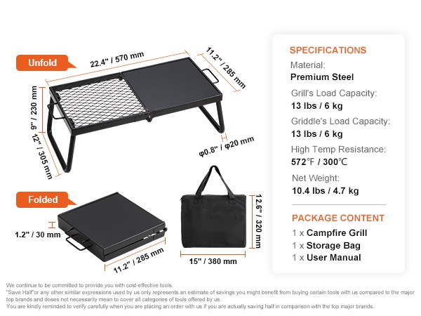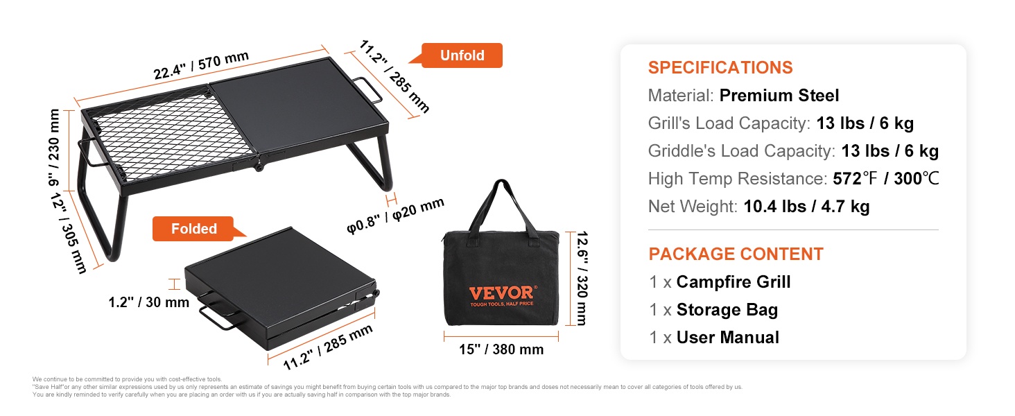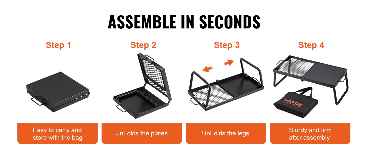 Grilli soveltuu retkeilyyn, leirintöihin, pihanuotiolle ja puistoon. Korkeutta voidaan säätää, joten ruoan etäisyys tuleen on helppo mukauttaa. Rakenne on yksinkertainen ja asennus onnistuu nopeasti ilman erillisiä jalustoja tai kolmijalkoja.