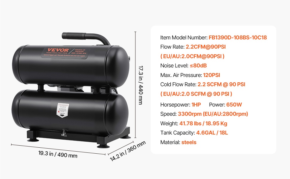 Tämä vaakasuuntainen öljytön ilmakompressori tuottaa 1HP teholla riittävästi painetta erilaisiin paineilmatöihin. Se tarjoaa tasaisen ilman- ja tehonsyötön esimerkiksi naulaamiseen, renkaiden täyttöön ja maalaustöihin.