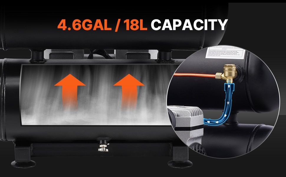 1 GAL / 4L terässäiliö tekee kompressorista kompaktin ja helposti liikuteltavan eri työympäristöissä. Pienempi säiliökapasiteetti vähentää painoa ja kokoa, joten laite on helppo varastoida ja kuljettaa.