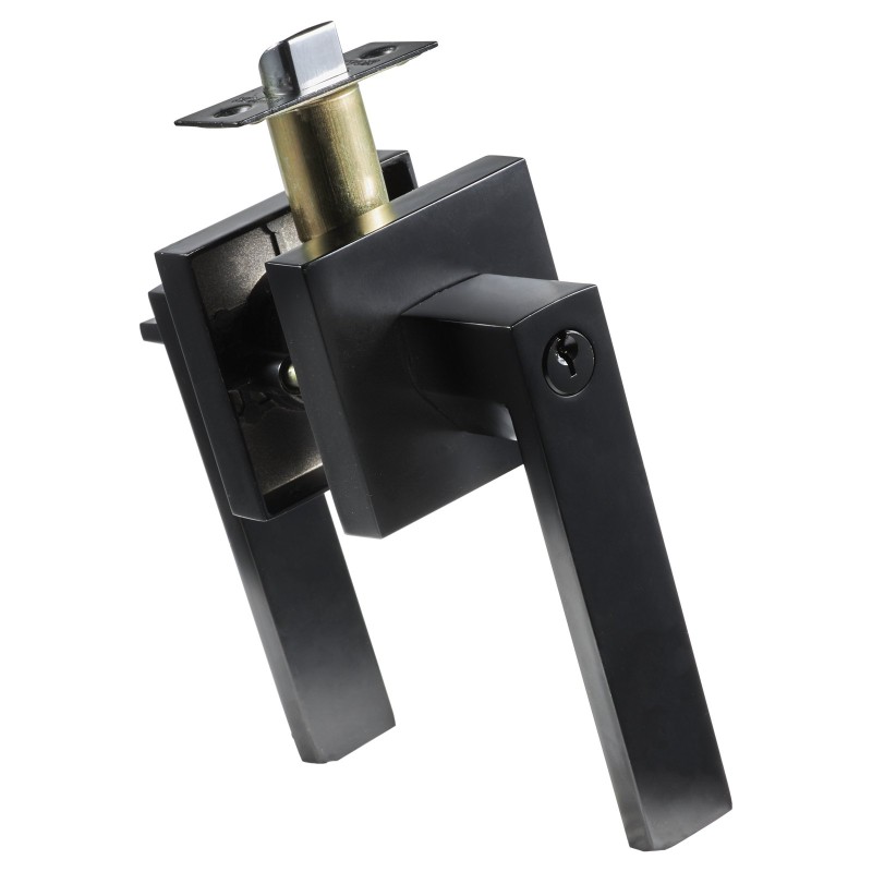 Moderni musta ovenpainikesetti avaimella lukittaviin oviin. Helppokäyttöinen 45 asteen kääntö, yhteensopiva useimpien sisä- ja ulko-ovien kanssa ja käännettävä sekä oikea- että vasenkätisiin oviin.