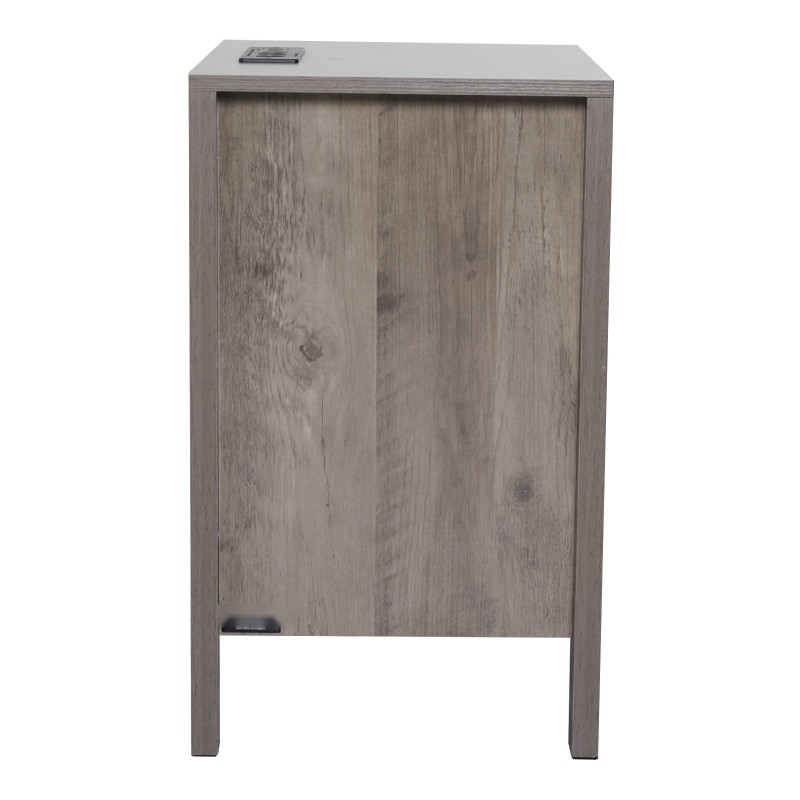 Päätypöytä 2 kpl neliö kolmitasoinen lastulevy harmaa kaappi 2 laatikkoa latausasema