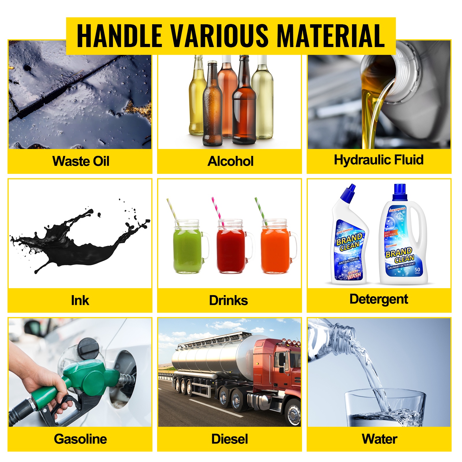 Paineilmakäyttöinen kalvopumppu pystyy siirtämään monia viskoosisia ja syttyviä nesteitä, kuten jäteöljyä, alkoholia, hydrauliöljyä, bensiiniä, dieseliä, pesuainetta, juomavettä ja muita vastaavia nesteitä.