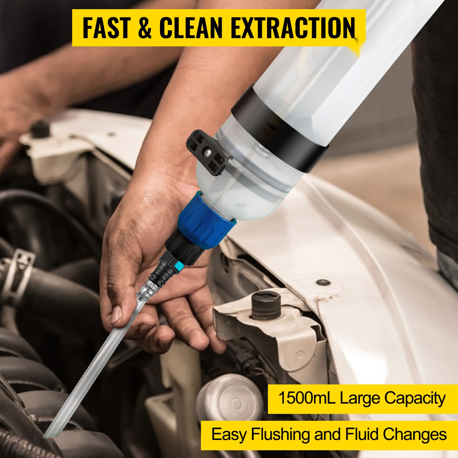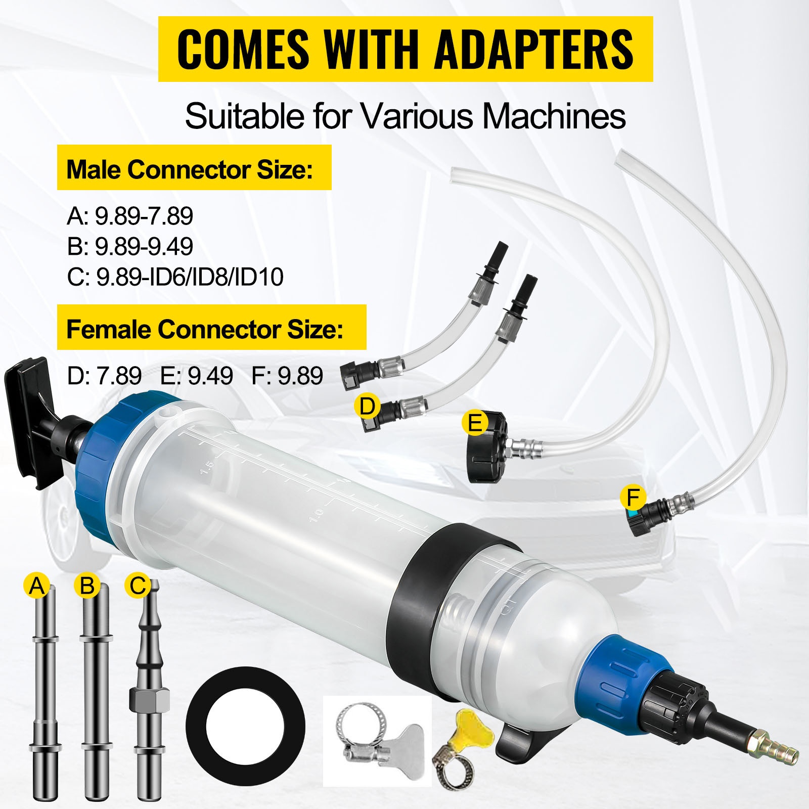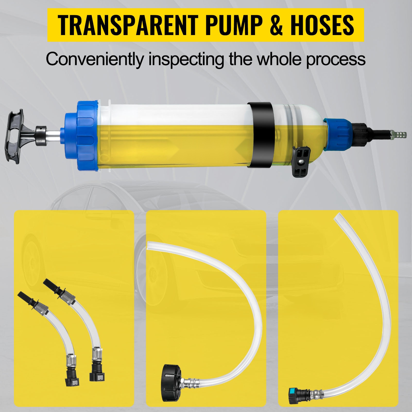 Öljynpoistaja toimitetaan kuudella erikokoisella imuletkulla, jotka sopivat eri ajoneuvojen öljytiloihin. Letkut yltävät polttoainesäiliön ja öljypohjan pohjalle asti, mikä auttaa poistamaan nesteet mahdollisimman tarkasti ja vähentää vuotoriskiä.