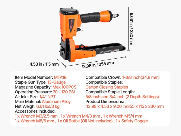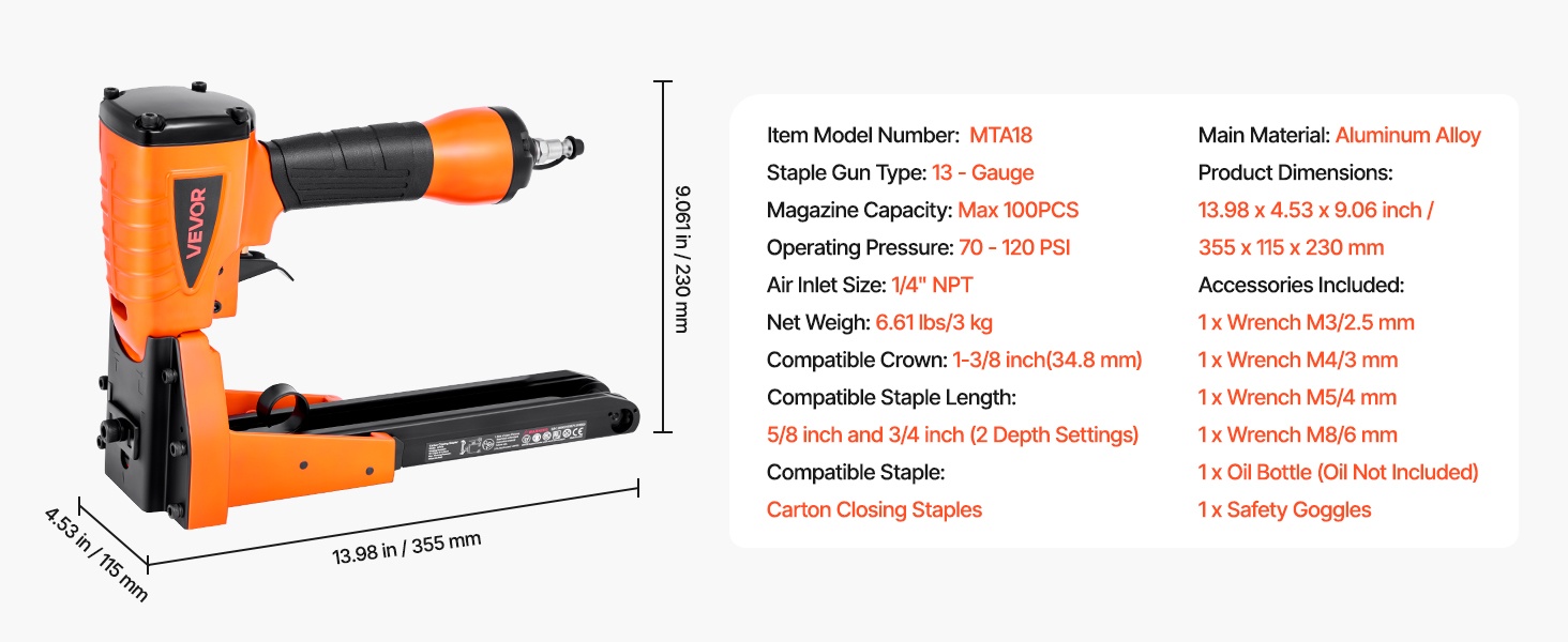 - Yhteensopiva niittipituus: 5/32–5/8 tuumaa (noin 4mm–16mm)